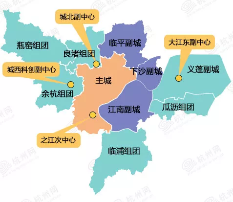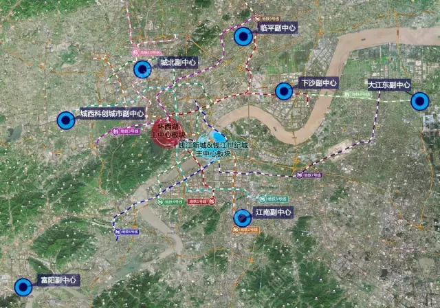 分别为江南副中心、下沙副中心、临平副中心、大江东副中心、城西科创城市副中心、城北副中心、富阳副中心。